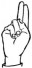 На ћирилици написано НИНА АЛАВАЊА састоји се из 11 слова [?]. Исписано ћириличном једноручном азбуком за глувонеме: